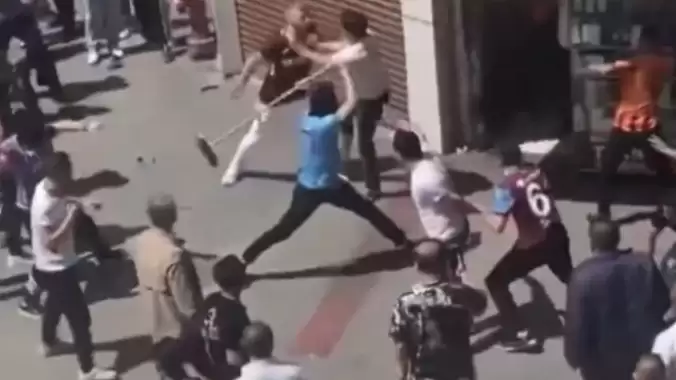 Yumrukların ve sopaların konuştuğu olayda, Gaziantep halkı olaya müdahale etmeye çalıştı.
